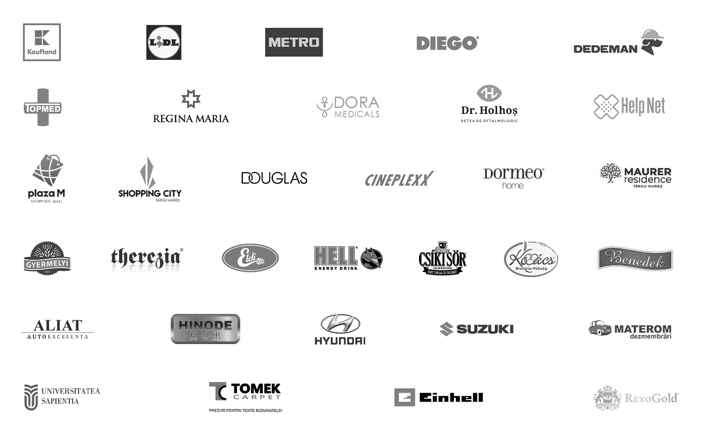 Dispunem de < 500 panouri publicitare tip 3,27×2,47m, 5,04×2,38m, 6x3m, metalice, stradale şi calcane. Mai dispunem şi de unipoluri de dimensiune 8x4m, City Light-uri, Backlight-uri, situate în multe oraşe, judeţe şi DN-uri din centrul ţării: Mureş, Reghin, Harghita, Cluj, Alba, Bistriţa, Sibiu, Braşov.